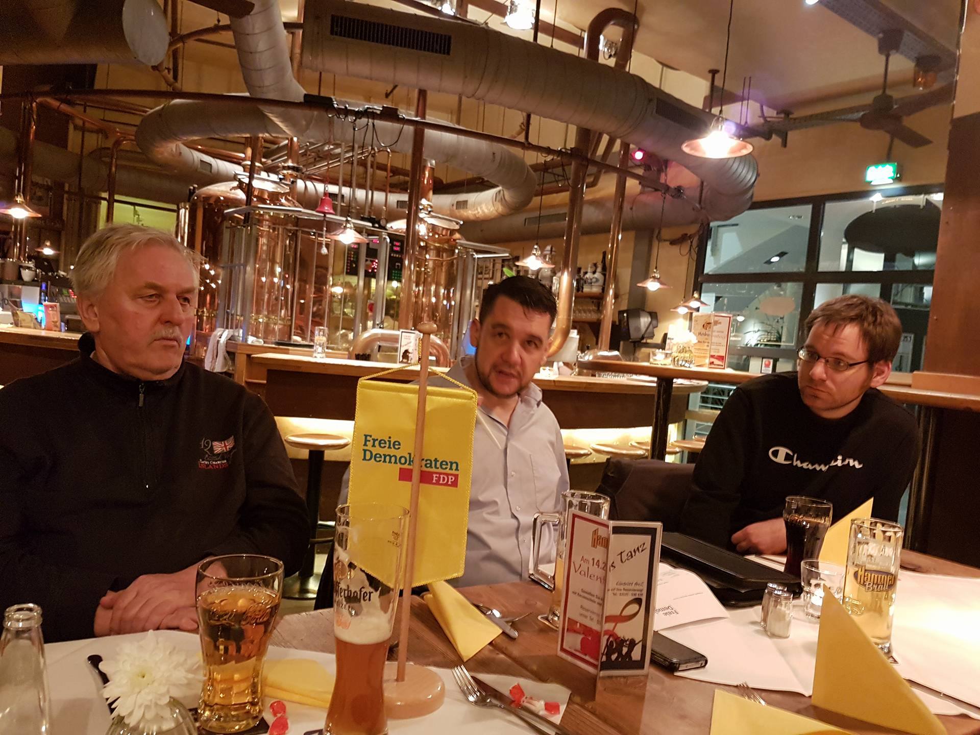 Überwiegend Selbstkritisches gab es auf der ersten Ortstagung im Riesaer "Hammerbräu"zu hören. Die Suche nach den zu bearbeitenden kommunalen Themen, die mangelnde öffentliche Sichtbarkeit der FDP und die notwendigen Maßnahmen um diesen Zustand zu ändern wurden sehr engagiert erläutert. Dazu sollen in den kommenden Wochen und Monaten verstärkt Anregungen von außen aufgenommen werden, indem Nichtmitglieder und Interessenten zu unseren Tagungen eingeladen und ihre Anliegen zur Diskussion gestellt werden sollen. Es liegt eine Menge Arbeit vor uns, gehen wir sie konzentriert an!